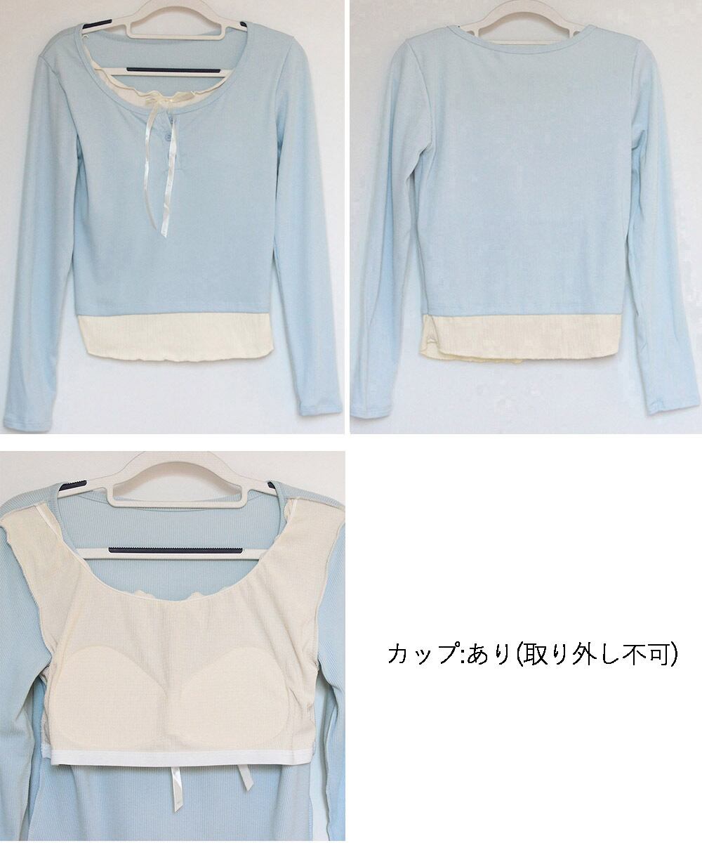 まるで重ね着しているように見えるフェイクレイヤードデザインが特徴の長袖トップスです。