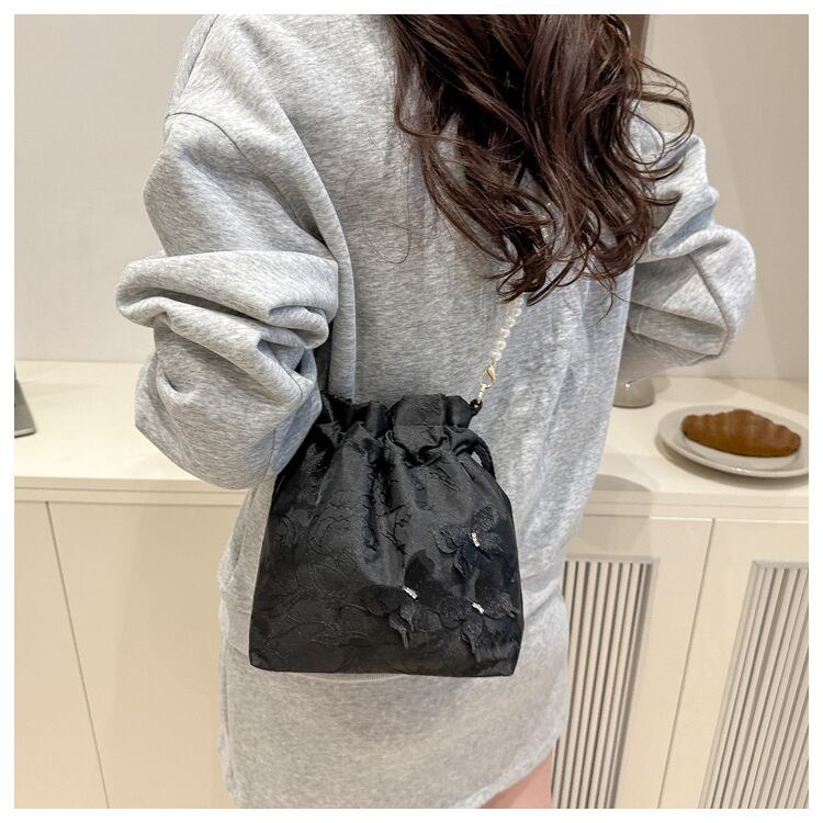 巾着 ショルダーバッグ 肩掛け 蝶々 刺繍 パールストラップ
