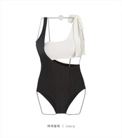 水着 レディース バイカラー ショルダーリボン ワンピース 水着 アシンメトリー オールインワン 新作