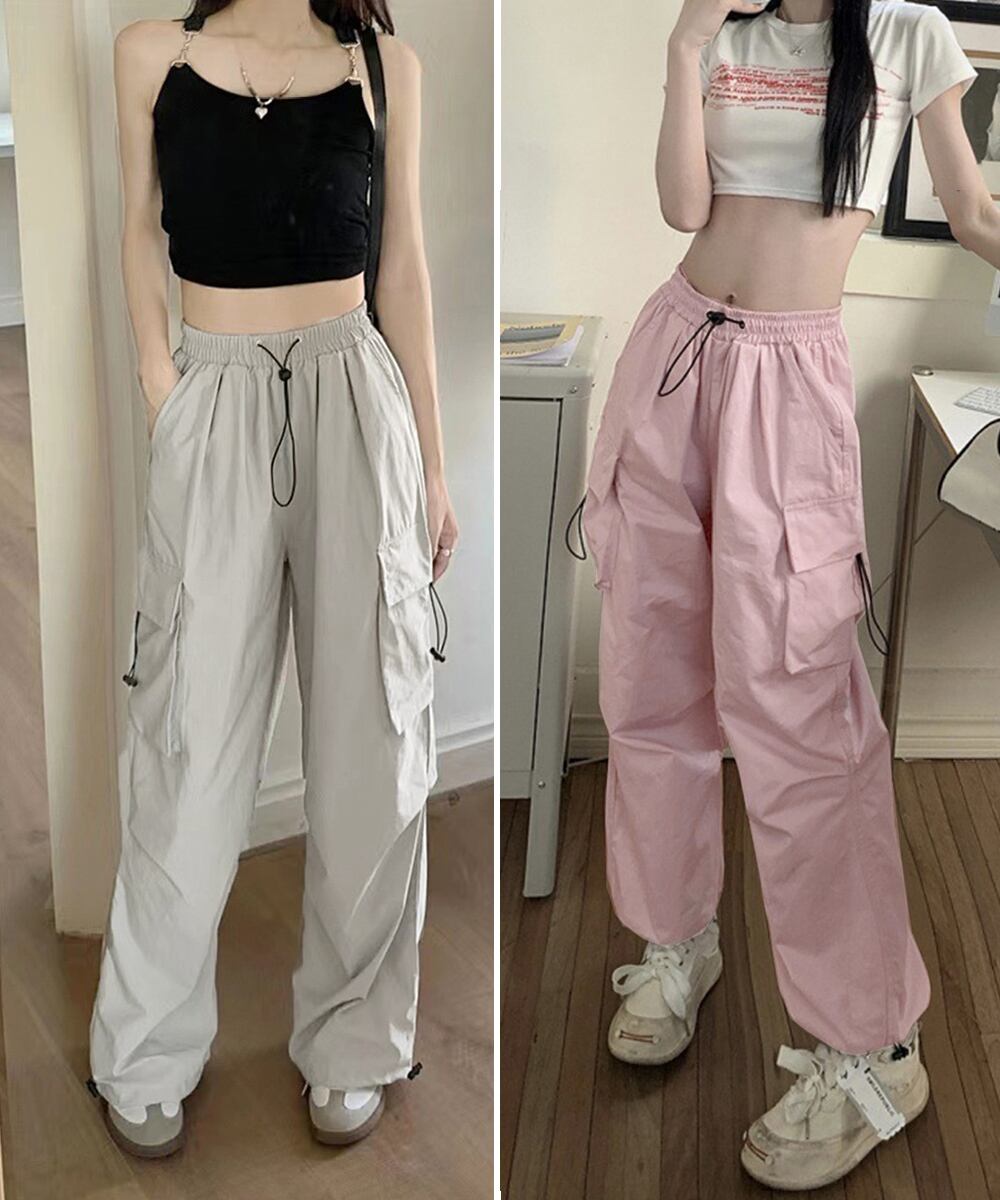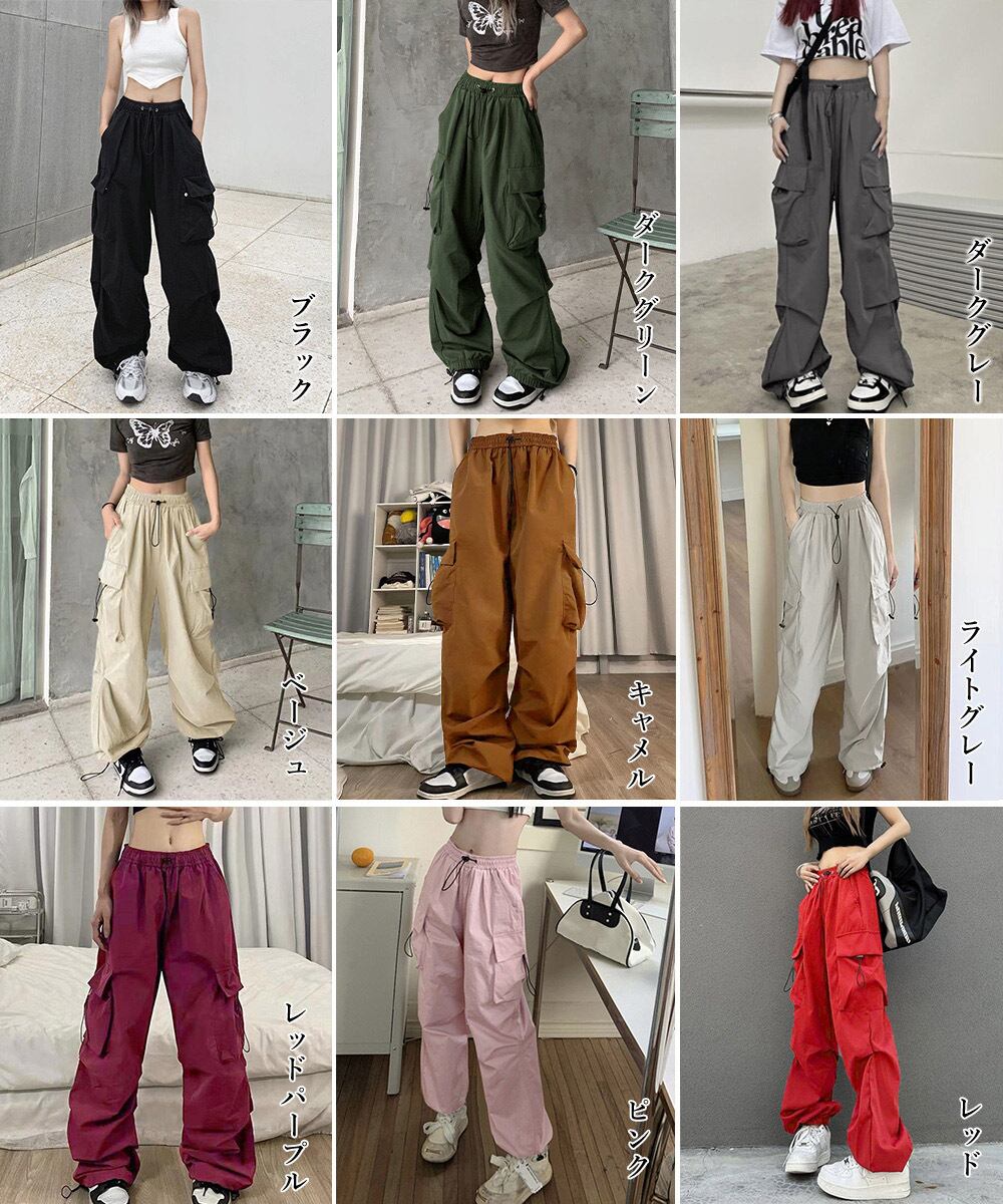 ミリタリーパンツ 薄手パラシュートパンツ 春夏スポーツパンツ ダンス衣装 韓国風 ウエストゴム ストリート ワイドパンツ