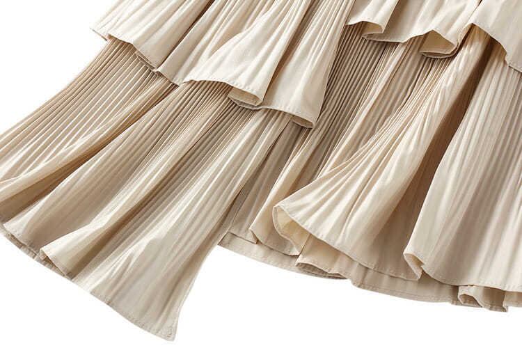 アシンメトリーなフリルが段になったティアードスカート。 主役スカートです。きれいなラインで動くたびに揺れるレディコーデ★☆エレガントで上品です★左右でレングスが異なるティアードプリーツは、遊び心満載の1着。キュートで可愛らしいシルエットですが、ロング丈で落ち着いた色味なので、大人のモード系、ゴシック系ゴスロリ系ロリータ系のファッションにも合わせやすい万能デザイン。ウエストはゴム仕様になっているので、比較的どんなスタイルの人にも着こなせるアイテムとなっています。