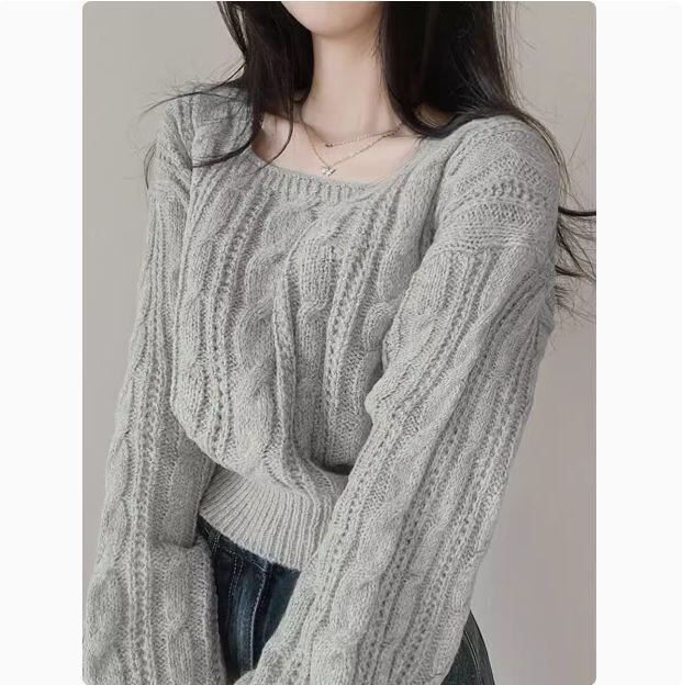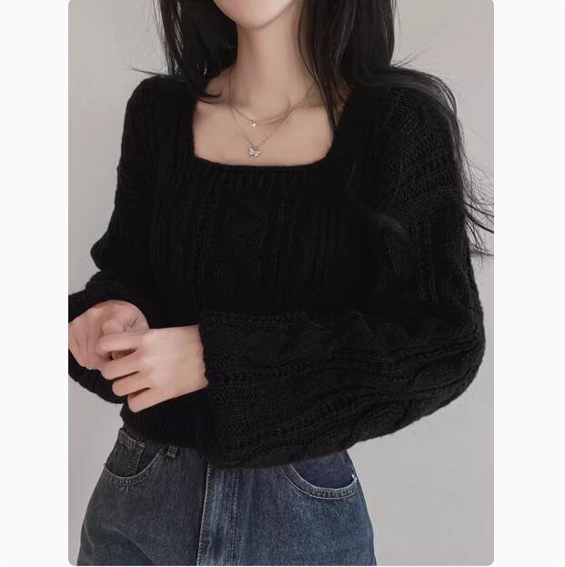 スクエアネックハーフクロップニット ニット 秋服 冬服 韓国風