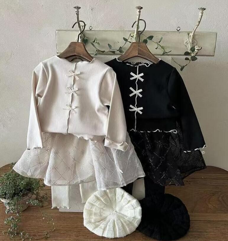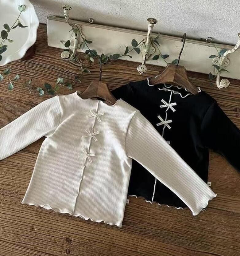 韓国版 リボン Tシャツ 北欧風 上着 女の子 トップス 子供服 73~100cm