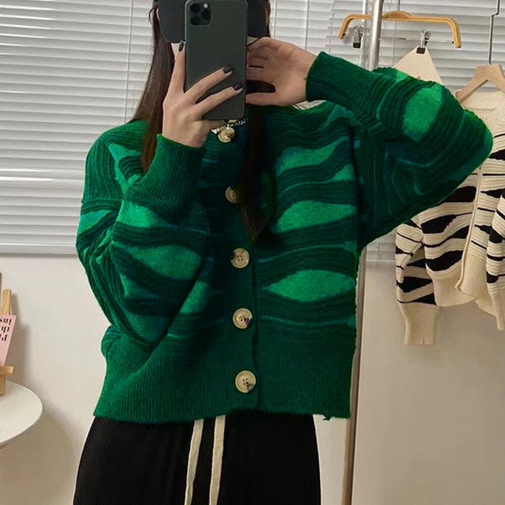 ニットカーディガン 秋冬レディース 配色