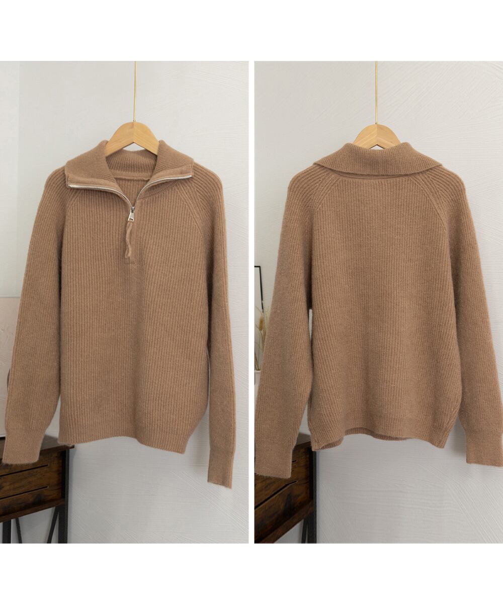 トレンドのハーフジップがアクセントになったニットセーター