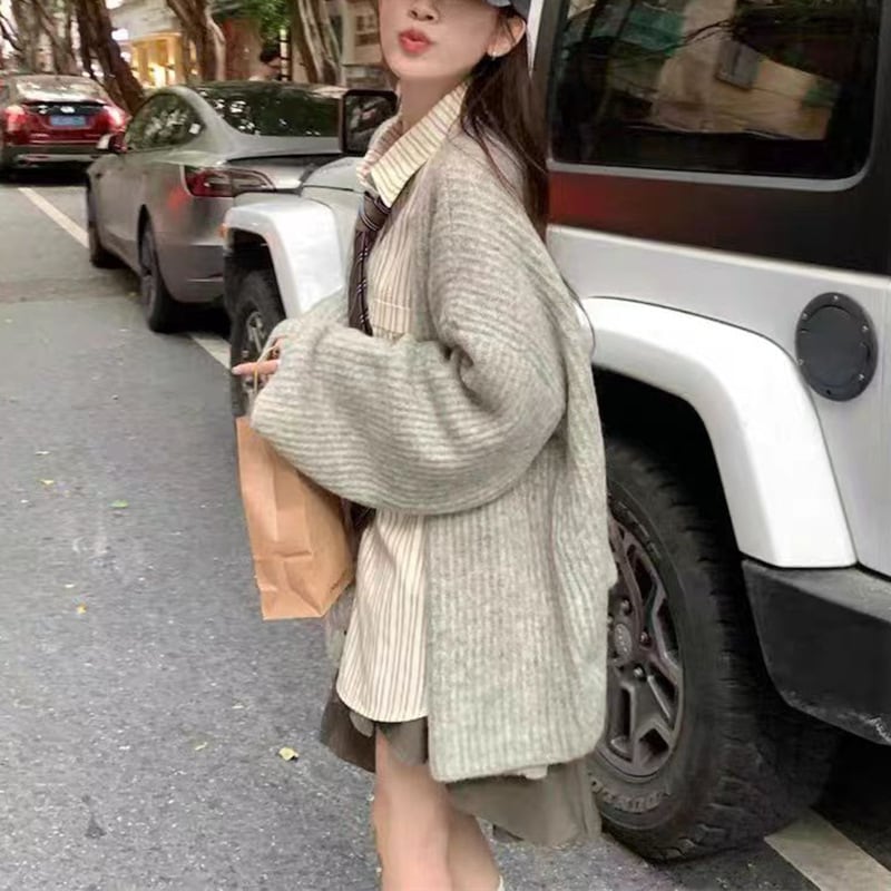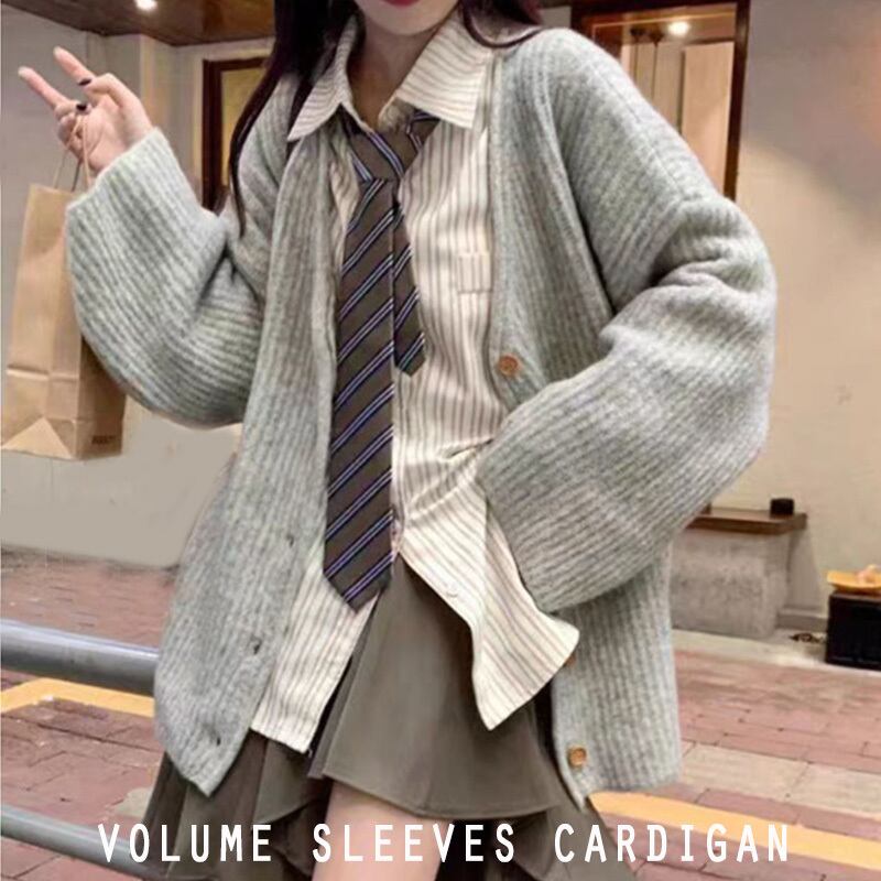 肩や二の腕の華奢見せが叶うボリューム袖ニットカーディガン