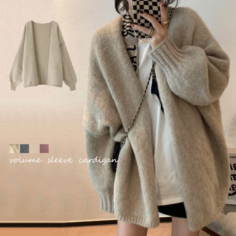 肩や二の腕の華奢見せが叶うボリューム袖ニットカーディガン