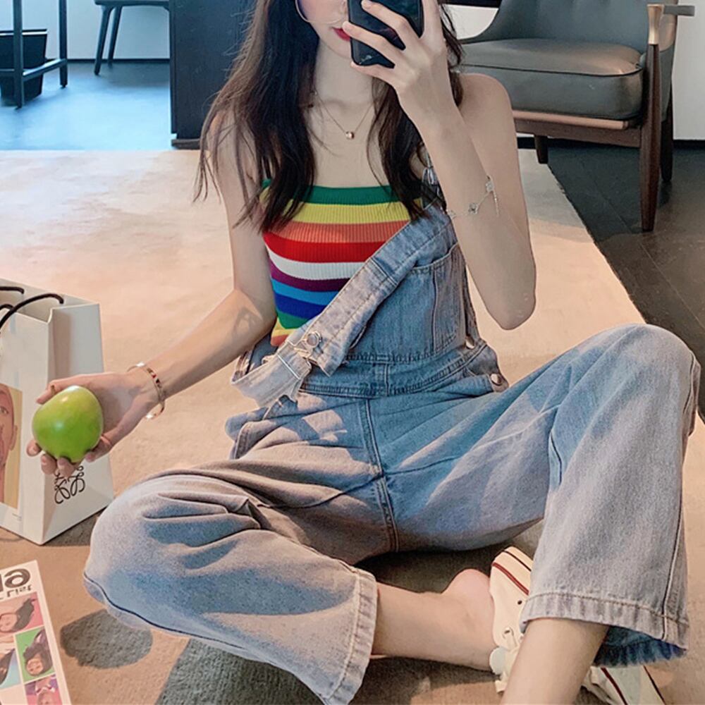 美脚 オーバーオール オールインワン ロングパンツ ジーンズ ストレート ジーパン 韓国ファッション 大人ストリート風