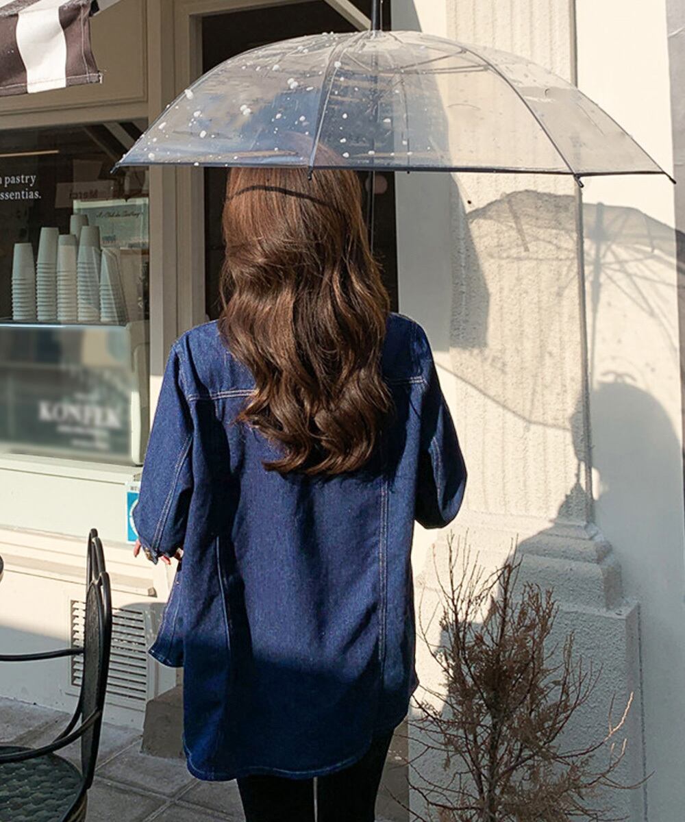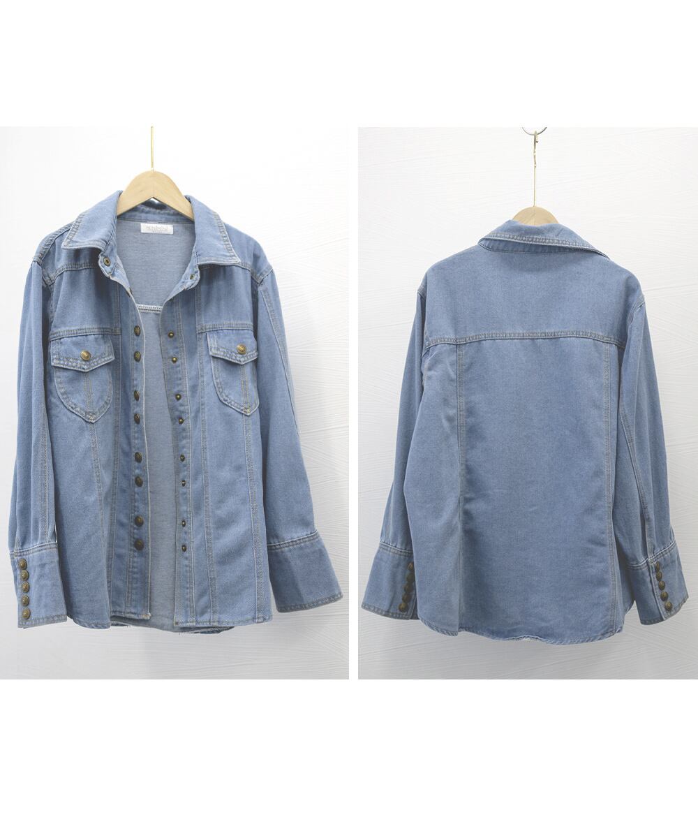 韓国ワークシャツ 長袖デニムブラウス 薄手ジージャン クール デニムアウター 体型カバー ロングシャツ カジュアル羽織り