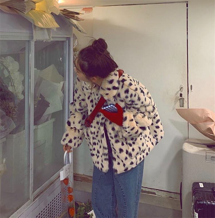 ウールコート 冬 コート 怠惰な風 短いスタイル 暖かい 厚手 スリム ゆったりする 豹柄20