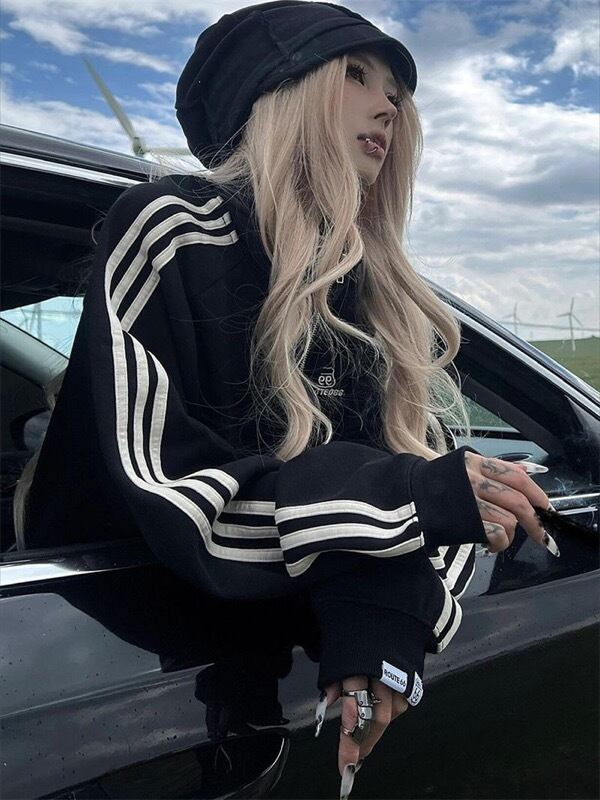 トップス スウェット トレーナー ライン プルオーバー ジップアップ レディース