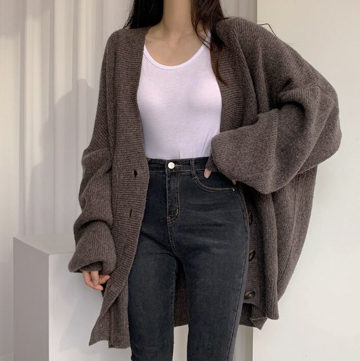 ゆったりとしたドルマンスリーブで女性らしさをプラス ニットカーディガン