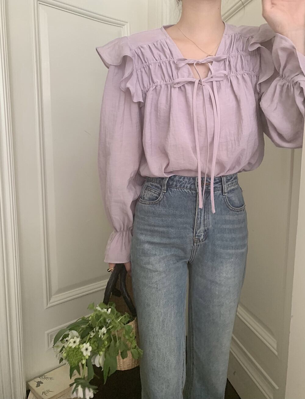 ペプラム飾り 個性的 設計感 折り襟 トップス シャツ ブラウス 気質 韓国系