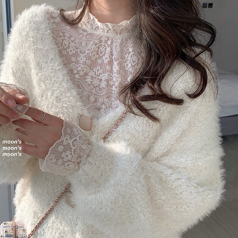 トップス レディース 長袖シャツ インナー レース メッシュトップス 透け感