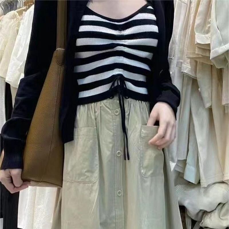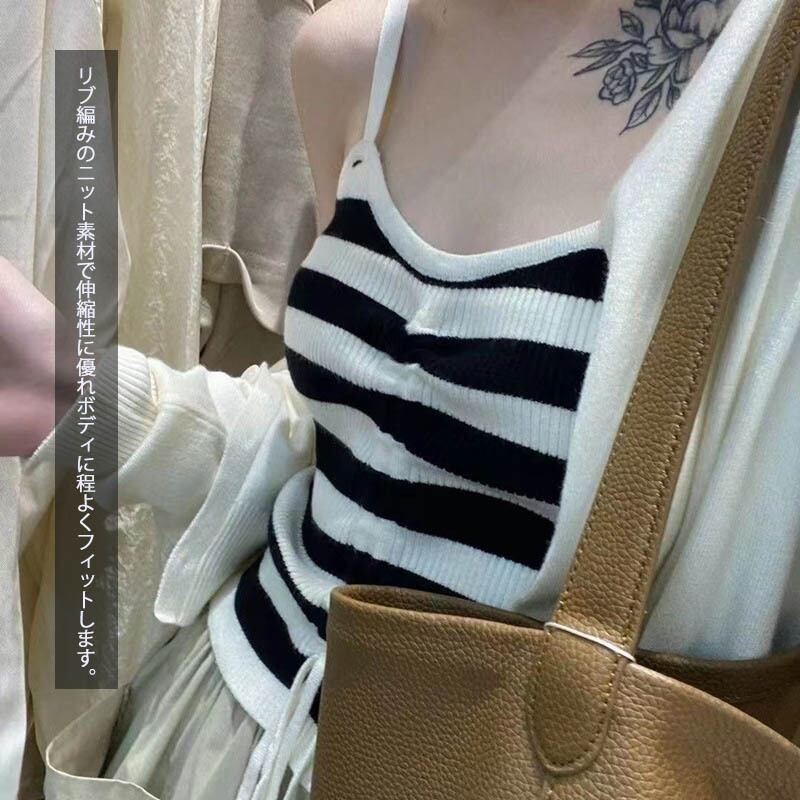 レディース ニット キャミソール ノースリーブ インナー 伸縮性 ボーダー 着回し フィット感