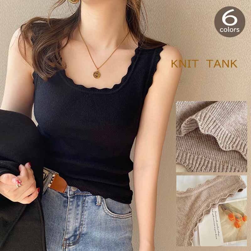 レディース ニット タンクトップ ノースリーブ インナー 伸縮性 大人 無地 通勤 スクエア 着回し