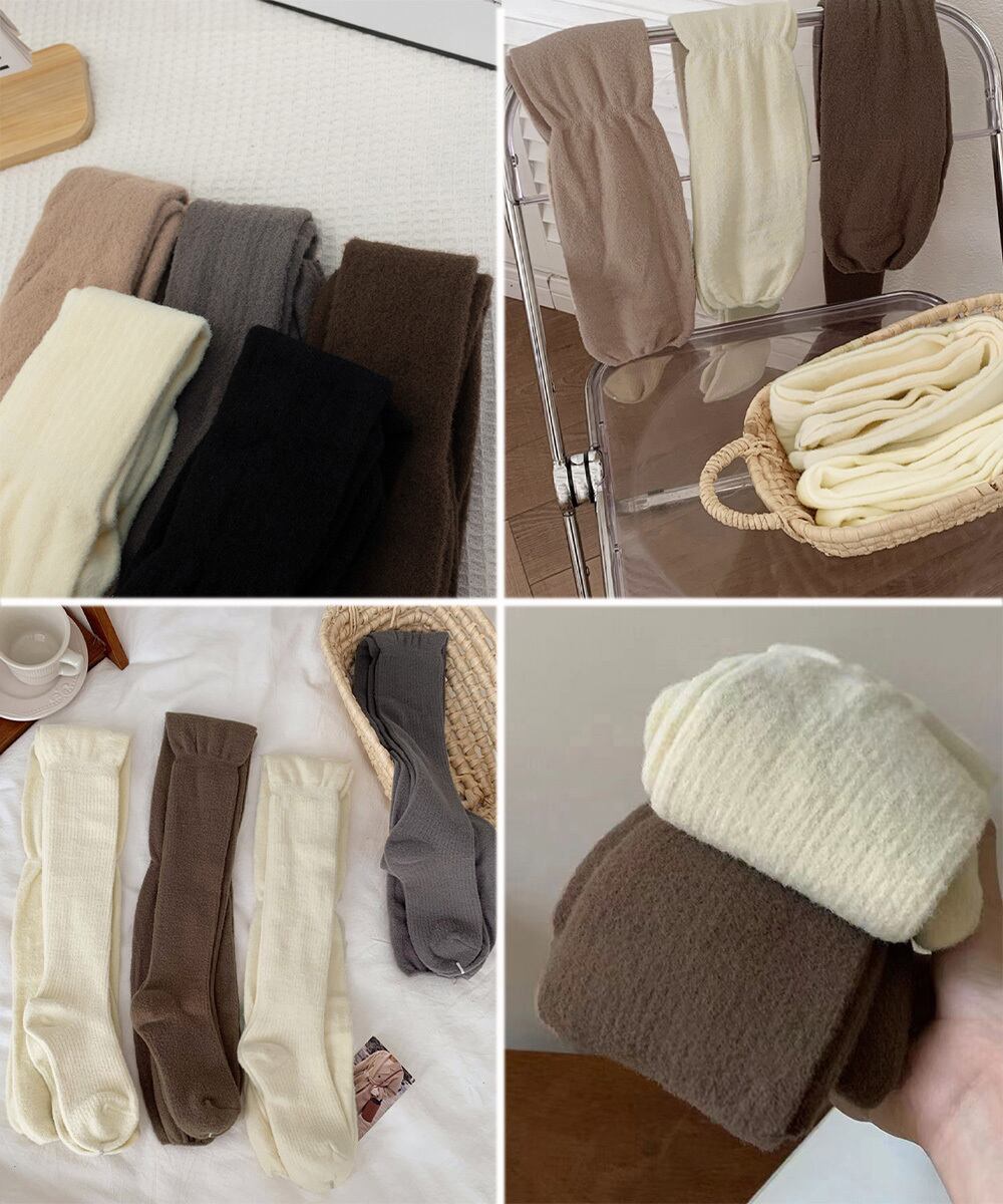 柔らかい 厚手サイハイソックス リブ切り替え 大人可愛い くしゅくしゅ靴下 無地 冷え対策 冬ロングソックス 防寒韓国風
