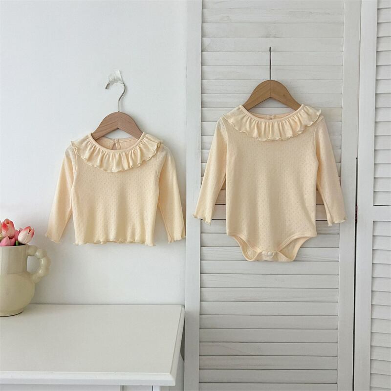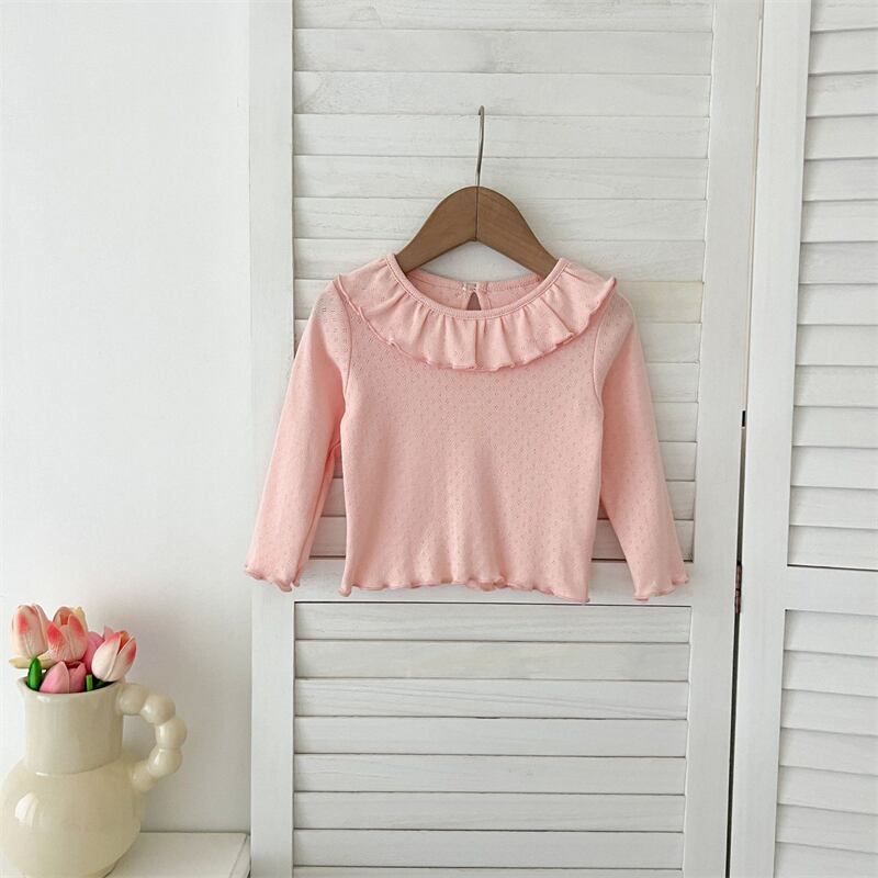 女の子 ラッフルカラー ニット 長袖 Tシャツ フリル トップス 柔らか 子供服 3色
