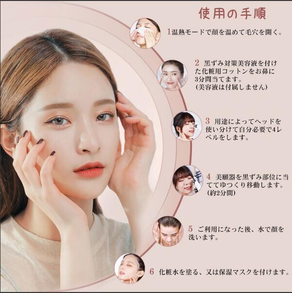 【温熱ケア機能付き】毛穴吸引機の底部にヒーターヘッドが付き、45℃温熱ケアモードに切り替え、Tゾーンや口元の肌を2~5分温熱ケアにより、毛穴を拡張して黒ずみの吸出しやすいです。